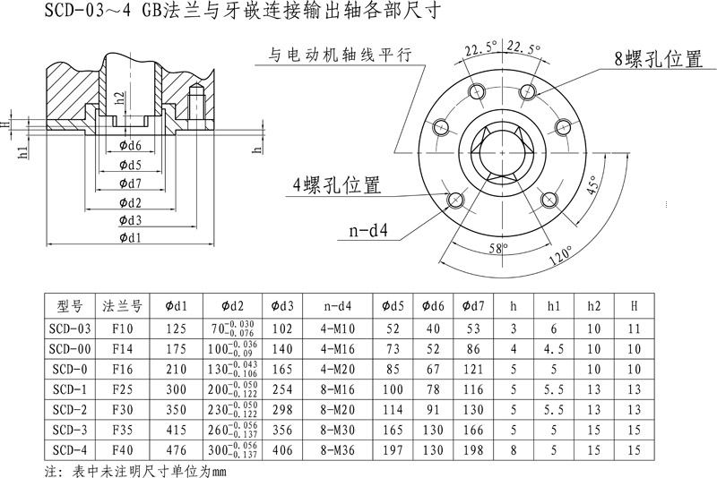 SCD-04~4 GB法蘭與牙嵌連接輸出軸各部尺寸