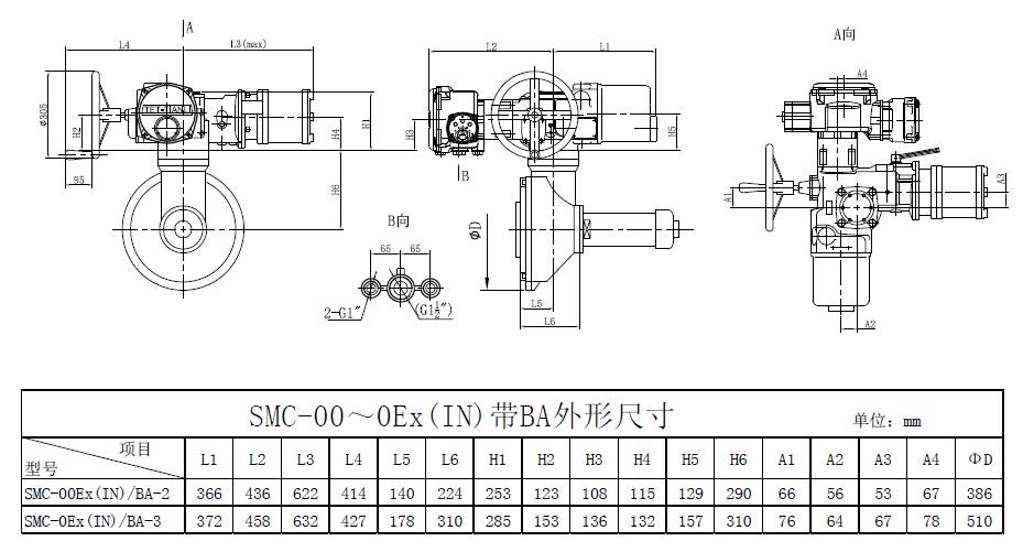 SMC/BA系列電動(dòng)裝置是SMC系列中小轉(zhuǎn)矩多回轉(zhuǎn)電動(dòng)裝置與BA圓錐齒輪減速器的一種組合型式,它適合閘閥、截止閥等多回轉(zhuǎn)閥門(mén)的驅(qū)動(dòng)控制。SMC/BA電動(dòng)裝置具有以下特點(diǎn):以較小轉(zhuǎn)矩規(guī)格的SMC電動(dòng)裝置與BA減速器組合可獲得更大的輸出轉(zhuǎn)矩。在輸出轉(zhuǎn)速允許的條件下,選用該產(chǎn)品能夠提高所選電動(dòng)裝置規(guī)格的通用性,便于產(chǎn)品的使用、維護(hù)。