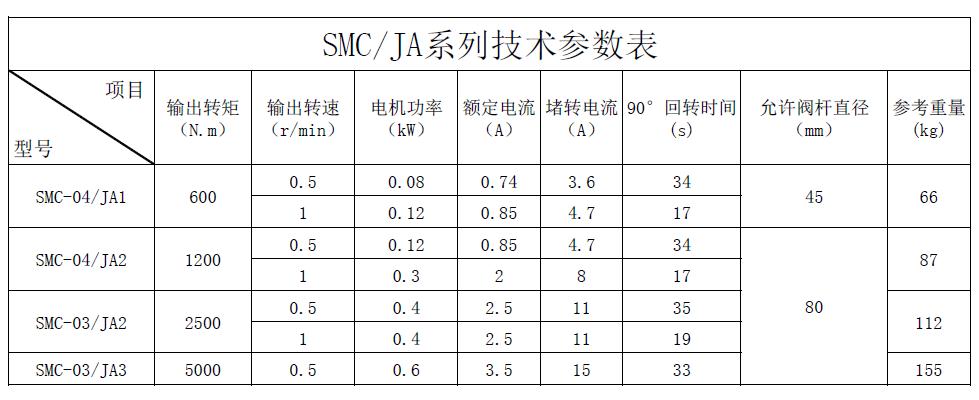 SMC/JA系列閥門電動裝置是部分回轉(zhuǎn)型閥門電動裝置,適用于球閥、蝶閥等類型閥門以及電動風(fēng)門。其結(jié)構(gòu)形式為組合式,由SMC多回轉(zhuǎn)電動裝置與JA部分回轉(zhuǎn)減速裝置相組合而成。該系列產(chǎn)品所適用的環(huán)境條件、溫度、濕度、海拔、防護等級均能達到SMC相應(yīng)規(guī)格產(chǎn)品的水平。