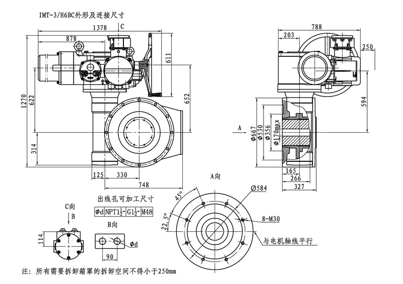 IMT/HBC系列智能型電動裝置是IMT系列多回轉(zhuǎn)智能型電動裝置與HBC蝸輪減速器的組合型式,它適合球閥、蝶閥等部分回轉(zhuǎn)閥門的驅(qū)動控制。 IMT/HBC智能型電動裝置具有以下特點:結(jié)構(gòu)設(shè)計堅固可靠,產(chǎn)品規(guī)格齊全,驅(qū)動轉(zhuǎn)矩范圍大且動力輸出穩(wěn)定, 具有良好的自鎖性能。 HBC輸出軸結(jié)構(gòu)獨特,裝有與閥桿連接的漸開線花鍵接頭,產(chǎn)品的安裝調(diào)試方便。