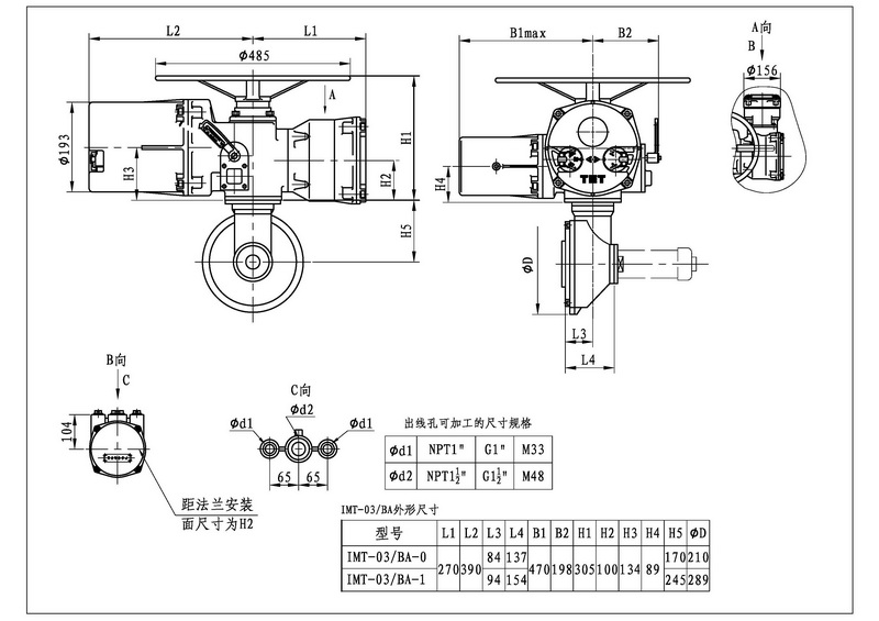 IMT/BA系列智能型電動裝置是IMT系列中小轉矩多回轉智能型電動裝置與BA圓錐齒輪減速器的一種組合型式,它適合閘閥、截止閥等多回轉閥門的驅動控制。IMT/BA智能型電動裝置具有以下特點:以較小轉矩規(guī)格的IMT電動裝置與BA減速器組合可獲得更大的輸出轉矩。在輸出轉速允許的條件下,選用該產(chǎn)品能夠提高所選電動裝置規(guī)格的通用性,便于產(chǎn)品的使用、維護。