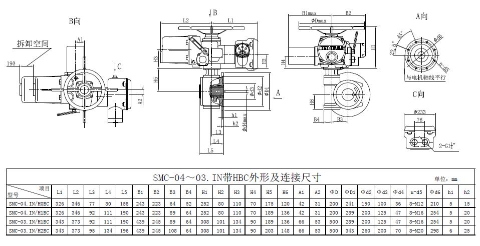 SMC/HBC系列電動裝置是SMC系列多回轉電動裝置與HBC蝸輪減速器的組合型式,它適合球閥、蝶閥等部分回轉閥門的驅動控制。SMC/HBC電動裝置具有以下特點:結構設計堅固可靠,產品規(guī)格齊全,驅動轉矩范圍大且動力輸出穩(wěn)定, 具有良好的自鎖性能。 HBC輸出軸結構獨特,裝有與閥桿連接的漸開線花鍵接頭,產品的安裝調試方便。