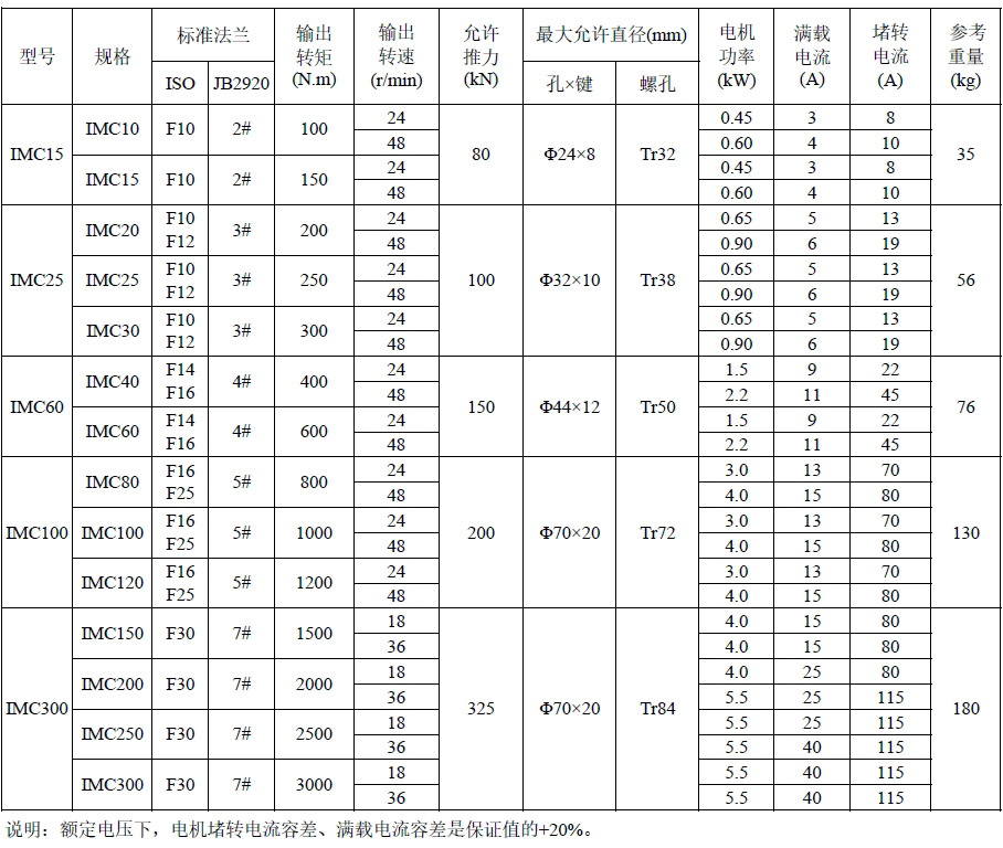 IMC標準技術(shù)參數(shù)表