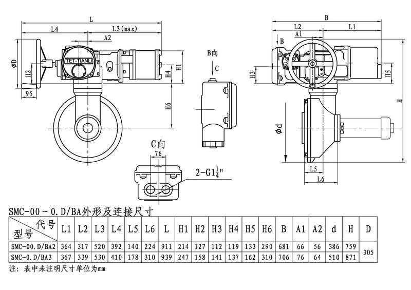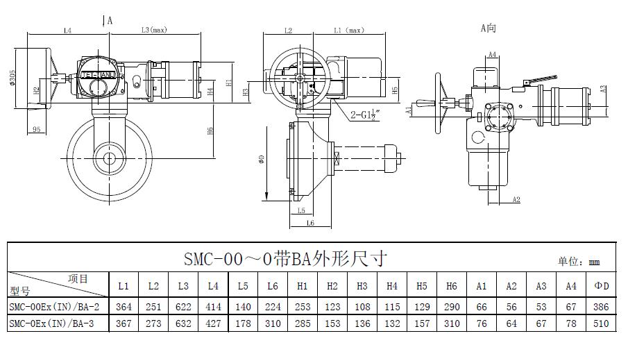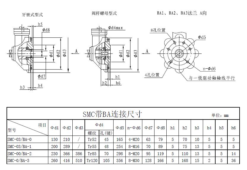 SMC/BA系列電動裝置是SMC系列中小轉矩多回轉電動裝置與BA圓錐齒輪減速器的一種組合型式,它適合閘閥、截止閥等多回轉閥門的驅動控制。SMC/BA電動裝置具有以下特點:以較小轉矩規(guī)格的SMC電動裝置與BA減速器組合可獲得更大的輸出轉矩。在輸出轉速允許的條件下,選用該產品能夠提高所選電動裝置規(guī)格的通用性,便于產品的使用、維護。