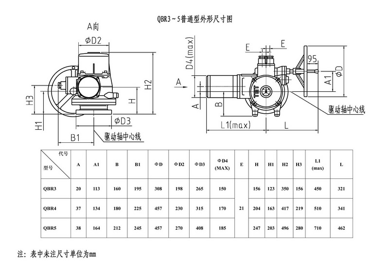 QBR3QBR5是我公司研制的部分回轉(zhuǎn)閥門電動(dòng)裝置,控制轉(zhuǎn)矩范圍:900N.m12000N.m。該電動(dòng)裝置可與球閥﹑蝶閥等閥瓣做90°回轉(zhuǎn)的閥門組合成電動(dòng)閥門,其功能是控制閥門的啟閉。該電動(dòng)裝置能夠進(jìn)行單機(jī)或多機(jī)室內(nèi)控制遠(yuǎn)距離控制電動(dòng)操作和現(xiàn)場(chǎng)手動(dòng)或電動(dòng)操作,可廣泛地應(yīng)用在具有管道閥門的工業(yè)系統(tǒng)。該產(chǎn)品的防護(hù)等級(jí)為IP67,隔爆型產(chǎn)品(型號(hào)中有Ex)的隔爆等級(jí) 為dBT4。